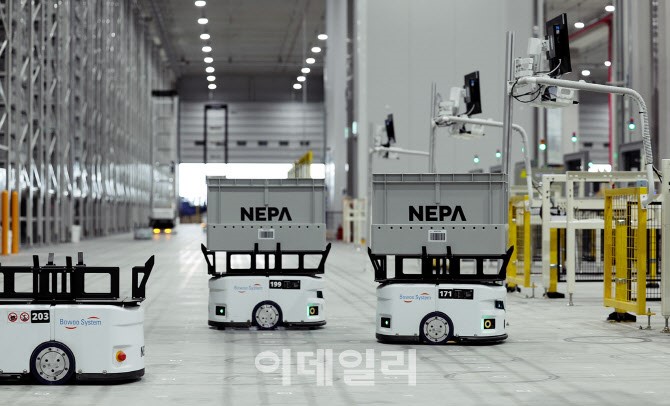 ๊ณ ์ต์ด๋ก ํํ์ ์ค๋งํธ ํตํฉ๋ฌผ๋ฅ์ผํฐ๋ฅผ ์ด๊ณ ์๋ํ ๋ฌผ๋ฅ ํ์ ์ ๋์ฐ์ด์. 7,887ํ ๊ท๋ชจ ์ผํฐ์ ๋ก๋ด์ด ํ๋ฃจ 4๋ง์ฌ ์ฅ ์๋ฅ๋ฅผ ์ฒ๋ฆฌํ๊ณ , ์