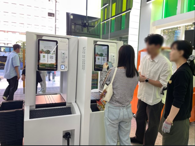최근 새벽배송 전문기업 오아시스마켓이 AI 무인계산 시스템을 도입했어요. 지난 10일 오픈한 강남 신규 매장에는 4대의 무인계산대가 설치돼 고객이 상품을 레일에 올리면 결제가 이뤄져요. 바코드 스캔 없이 물건을 올려놓기만 해도 계산이 되니 편리하대요. 다만 여러 물건을 사서 바구니를 올려놓으면 자동으로 계산이 되는 게 아닌 물건을 하나씩 올려야 한다는 한계가 있어요. 유통업계는 코로나19 이후 무인계산대 확대하고 있는데, 유니클로는 RFID로 결제, 아마존은 ‘아마존 고’ 등 자동결제 매장을 선보이기도 했어요.
