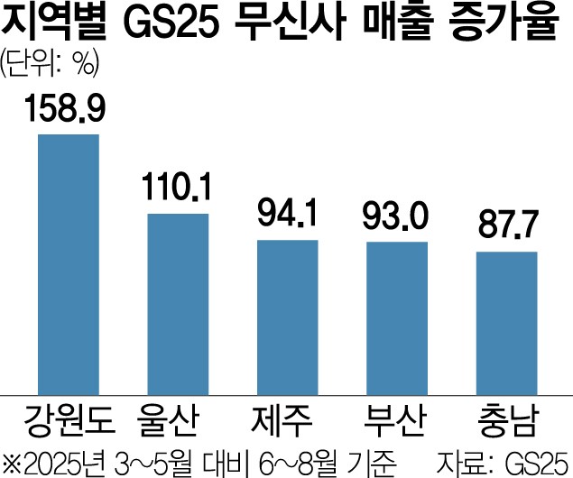 무신사 오프라인 매장이 적은 지방일수록 편의점에서 무신사 의류를 구매하는 고객들이 증가했대요. GS25가 선보인 무신사 제품 매출은 6~8월에 3~5월 대비 72% 증가했으며, 지역별로 강원(158.9%)·울산(110.1%)·제주(94.1%) 등에서 성장세가 두드러졌어요. 지방에 위치한 GS25의 무신사 제품 매출 증가율이 높은 것은 지역 내 무신사 오프라인 매장이 적기 때문이래요. 오프라인 고객 수요를 편의점이 일부 충족시켜주고 있는 거죠. 또한 휴가철 바닷가 등 관광지 근처 편의점에서 의류 수요가 높은 점도 영향을 미쳤어요. 또한 소비쿠폰 사용 가능처가 편의점으로 제한되면서, 무신사 구매가 편의점으로 몰린 것도 매출 증가에 기여했대요.