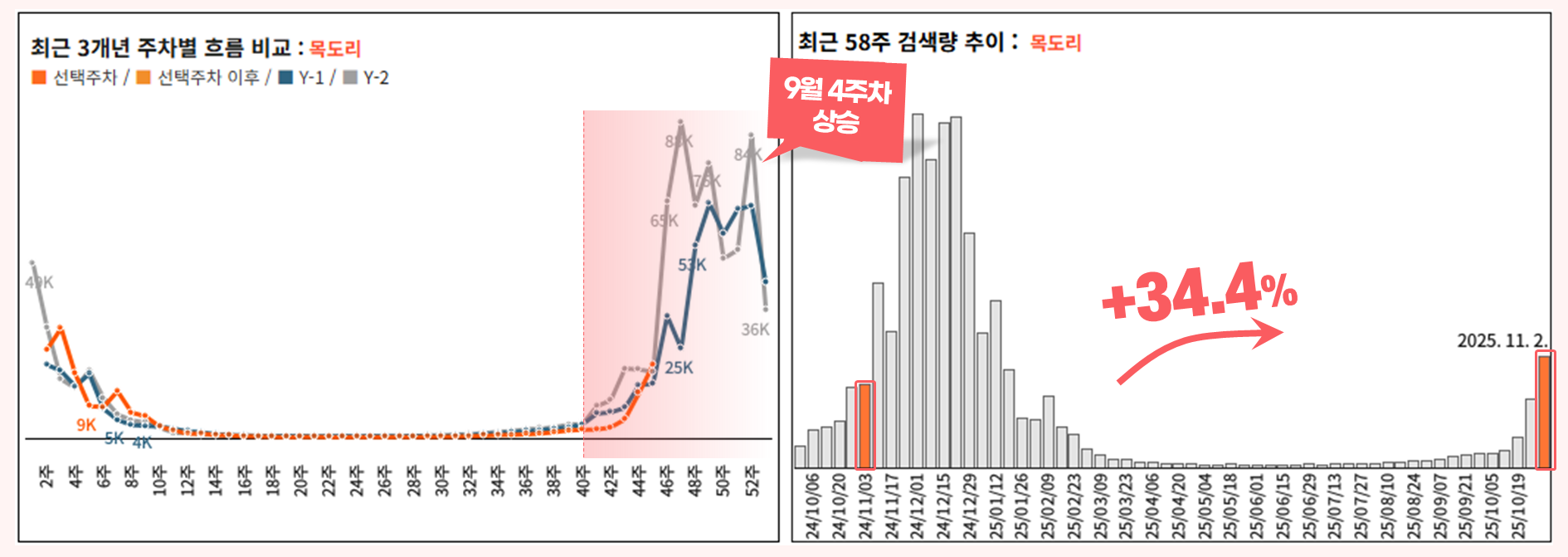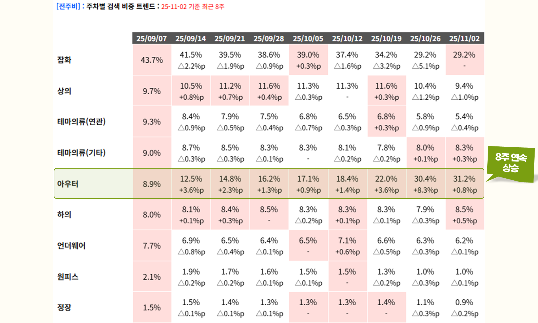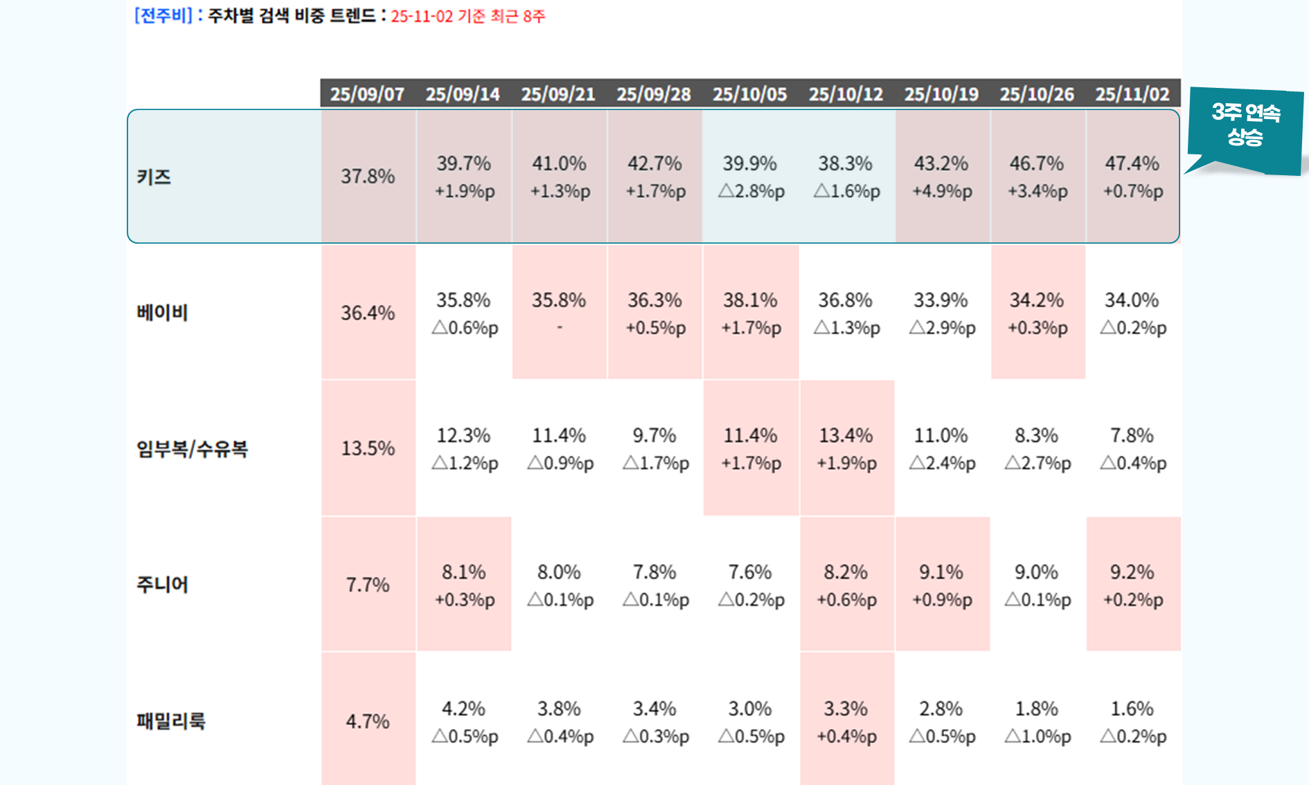 * ์ถ์ฒ : ํค์ฆ ๊ฒ์ PEAK ํธ๋ ๋_์ฃผ๊ฐ / [0] ํตํฉ ๊ฒ์ Trend (25-11-02 ์ฃผ์ฐจ ๊ธฐ์ค, Keyword)