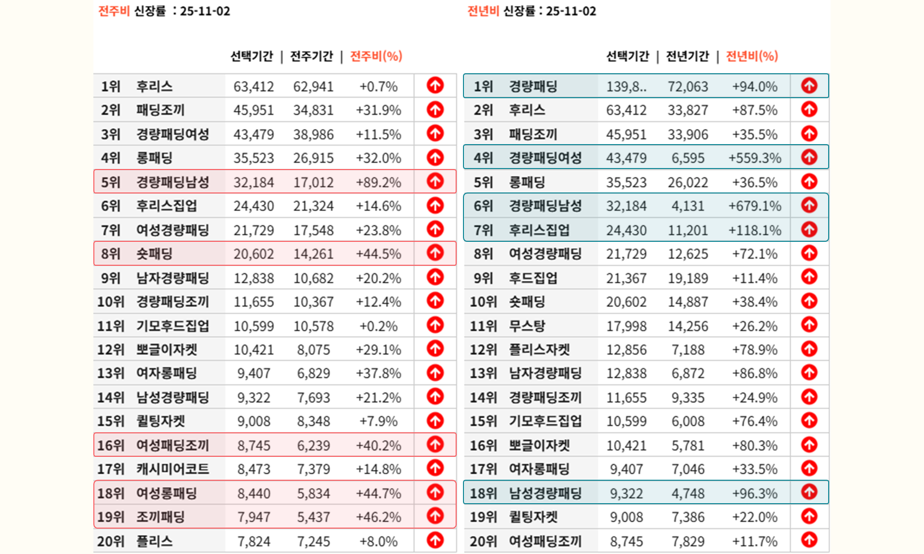 * ์ถ์ฒ : ์ฑ์ธ ๊ฒ์ PEAK ํธ๋ ๋_์ฃผ๊ฐ / [1] Quick_Review (+๊ธฐ์จ) (25-11-02 ์ฃผ์ฐจ ๊ธฐ์ค, 1 Depth) |