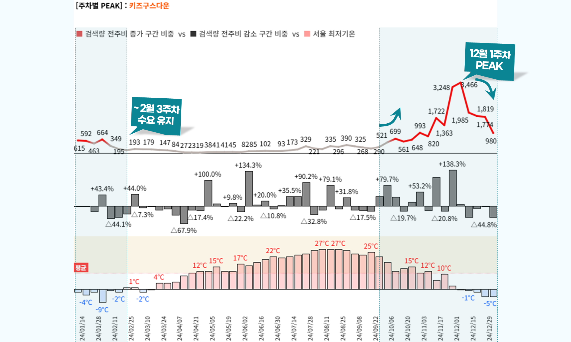 2) ํค์ฆ ไธญ ํค์ฆ๊ตฌ์ค๋ค์ด 12์ 1์ฃผ์ฐจ PEAK... 2์ 3์ฃผ์ฐจ๊น์ง ์์ ์ ์ง