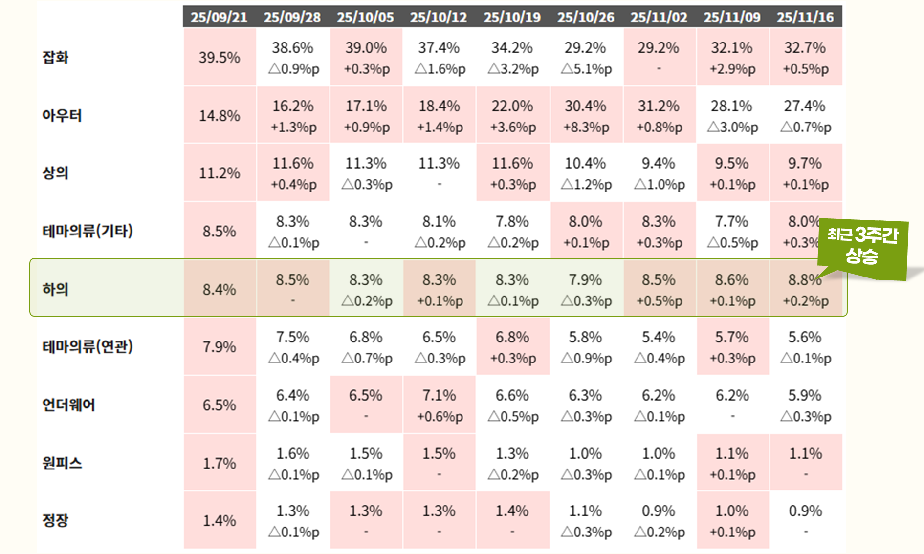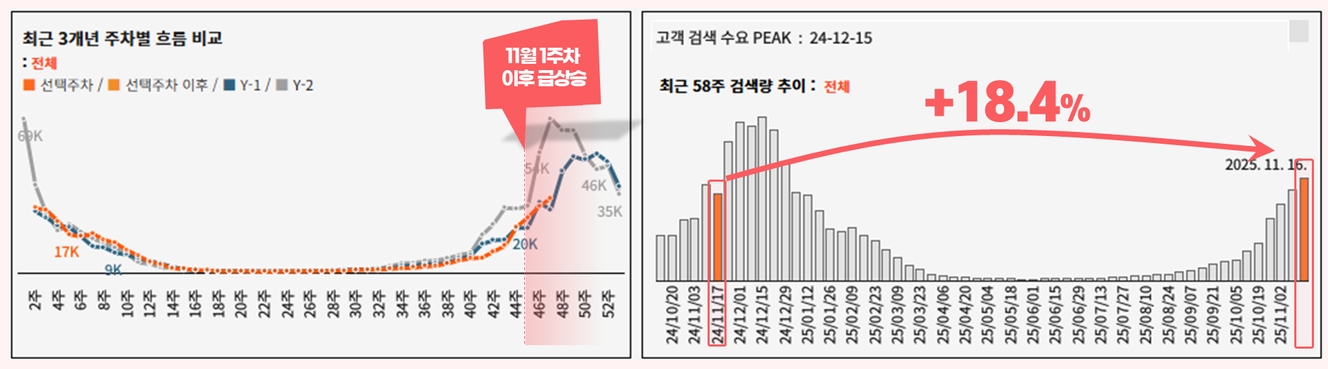 * ์ถ์ฒ : ํค์ฆ ๊ฒ์ PEAK ํธ๋ ๋_์ฃผ๊ฐ / [0] ํตํฉ ๊ฒ์ Trend (25-11-16 ์ฃผ์ฐจ ๊ธฐ์ค, Keyword)