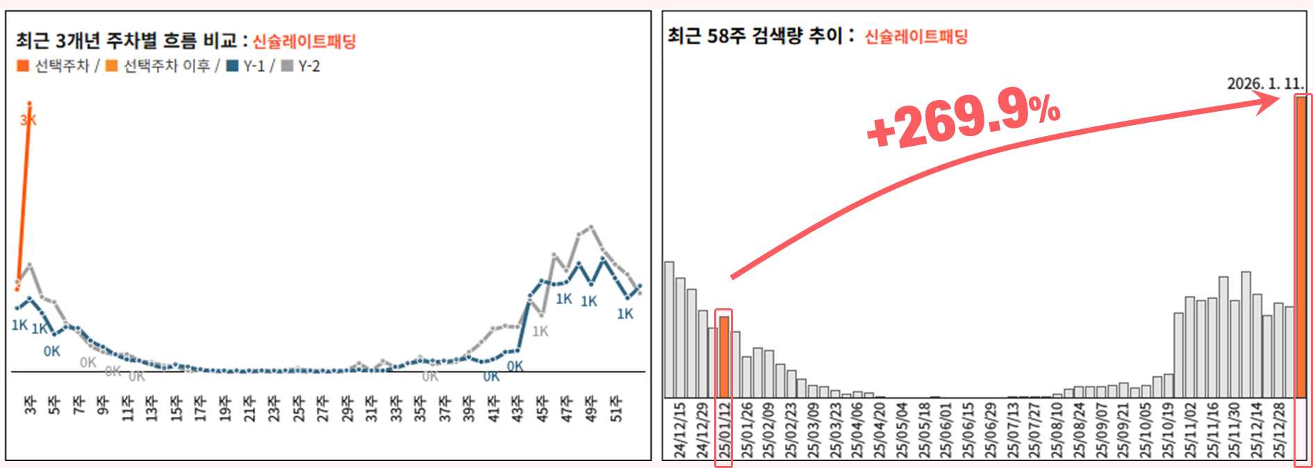 * ์ถ์ฒ : ํค์ฆ ๊ฒ์ PEAK ํธ๋ ๋_์ฃผ๊ฐ / [1] Quick_Review (+๊ธฐ์จ) (26-01-11 ์ฃผ์ฐจ ๊ธฐ์ค, 1 Depth)