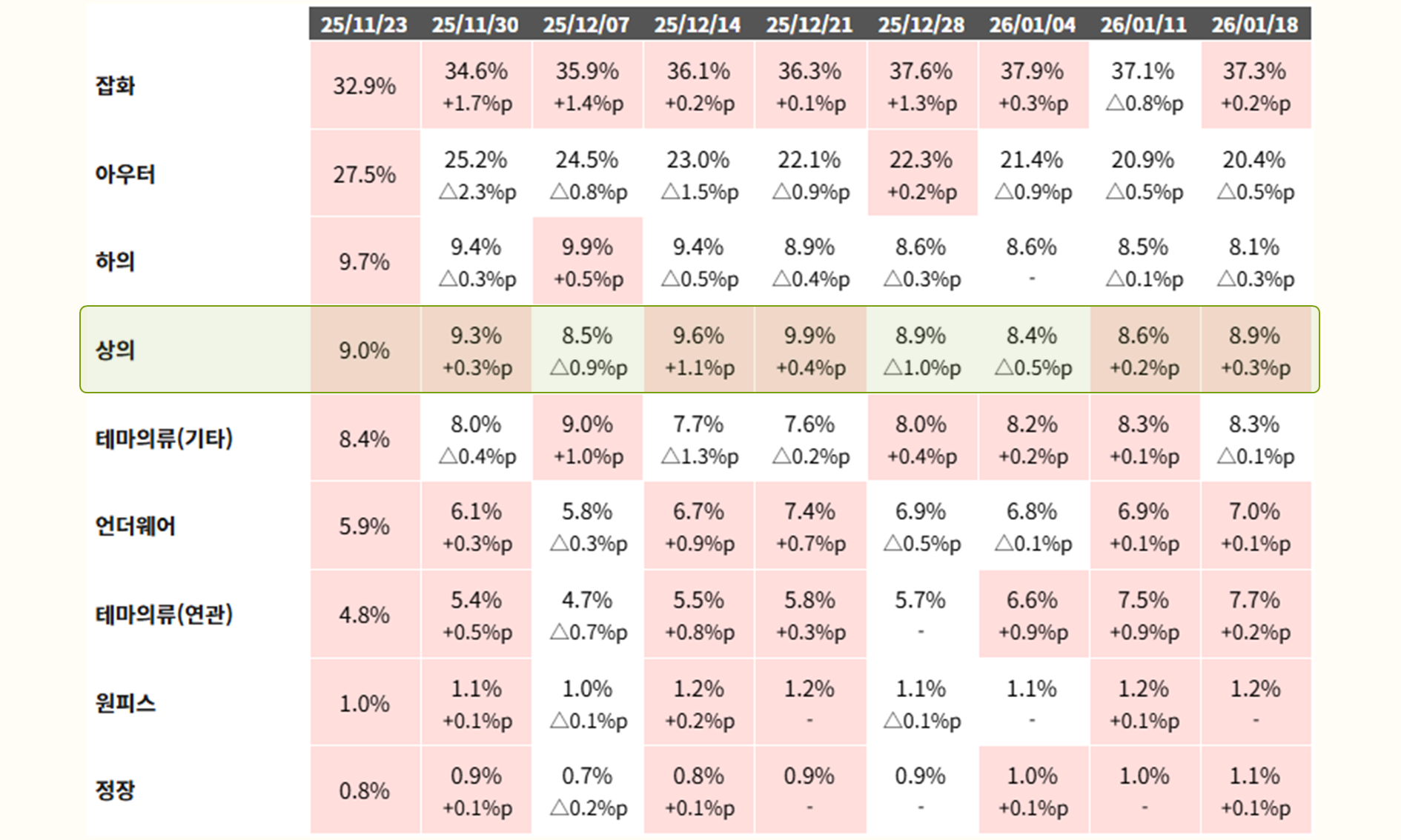 * ์ถ์ฒ : ์ฑ์ธ ๊ฒ์ PEAK ํธ๋ ๋_์ฃผ๊ฐ / [1] Quick_Review (+๊ธฐ์จ) (26-01-18 ์ฃผ์ฐจ ๊ธฐ์ค, 1 Depth) |