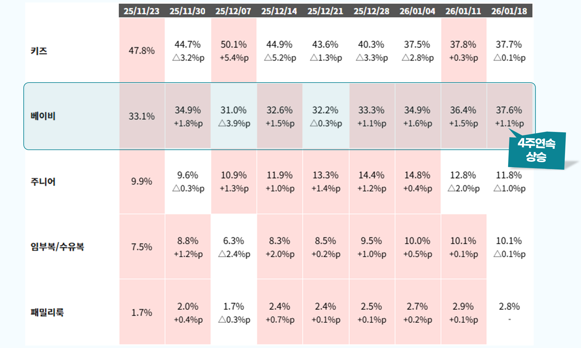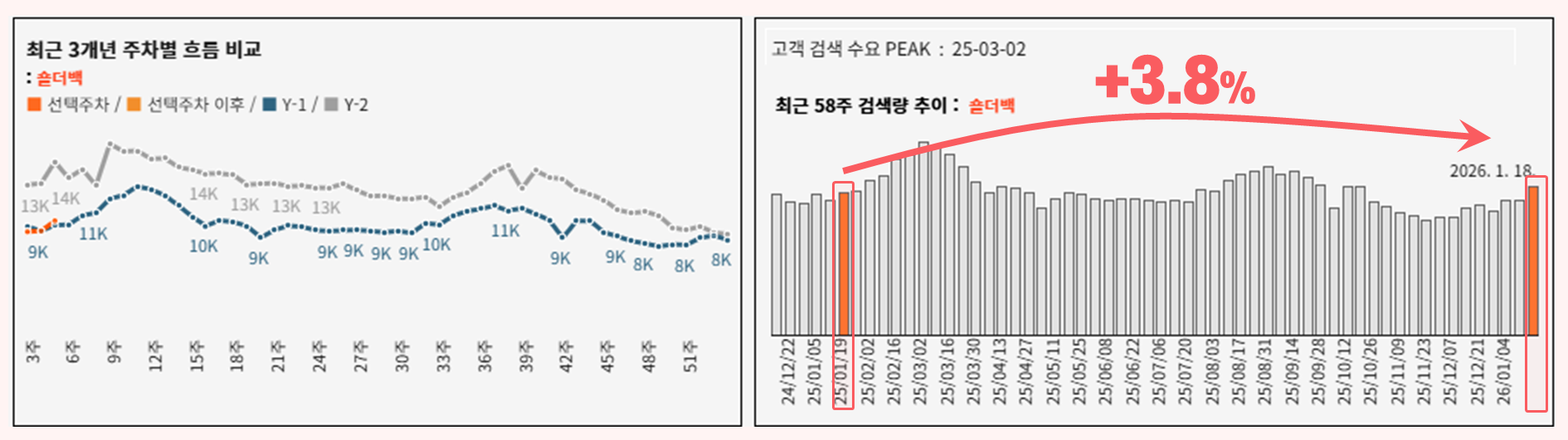 * ์ถ์ฒ : ํค์ฆ ๊ฒ์ PEAK ํธ๋ ๋_์ฃผ๊ฐ / [0] ํตํฉ ๊ฒ์ Trend (26-01-18 ์ฃผ์ฐจ ๊ธฐ์ค, Keyword)