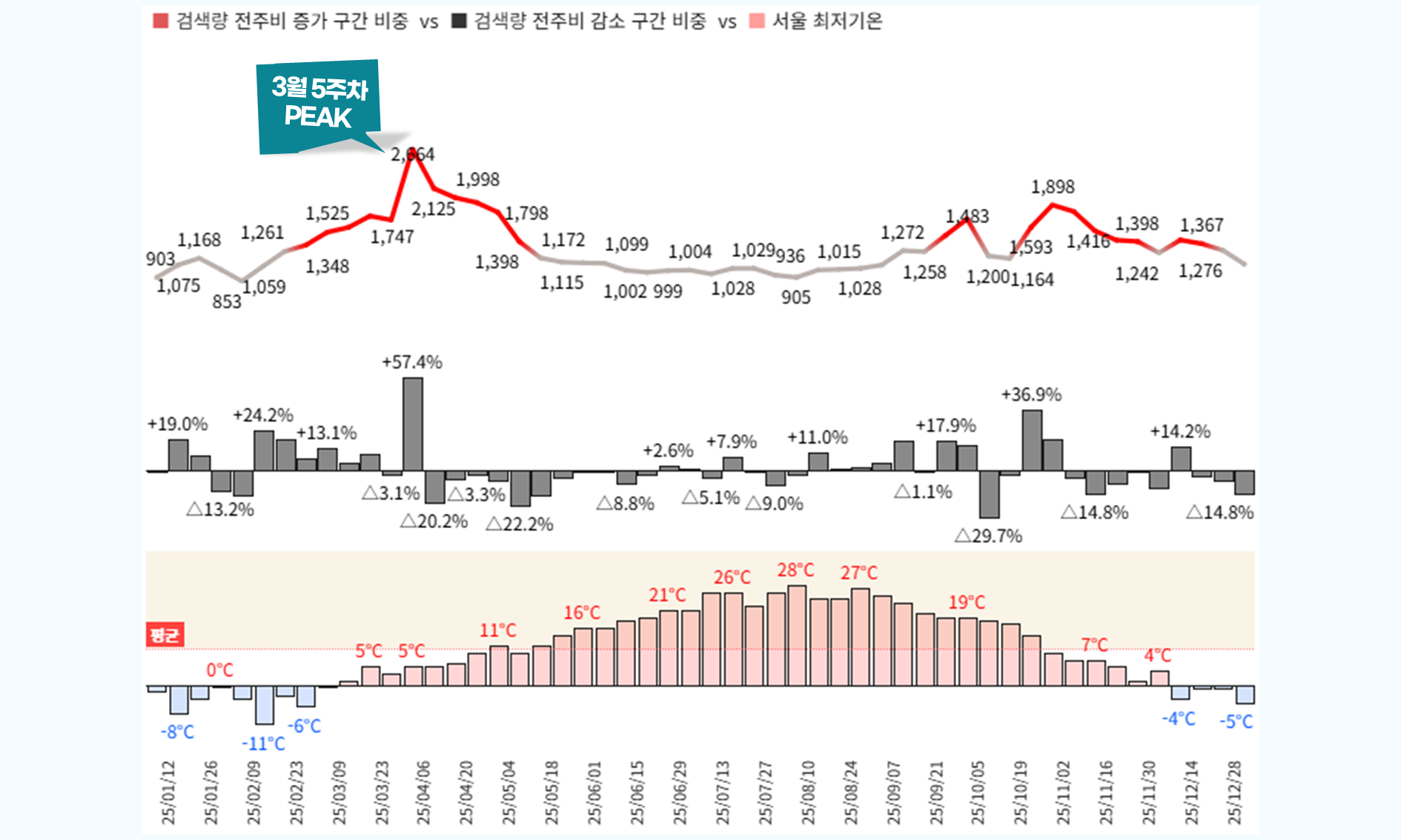 ์ฌ์ฑํ๋ํฐ 1์ฐจ PEAK์ธ 3์ 1์ฃผ์ฐจ์ ๊ฒ์๋์ด ์ ์ฃผ๋๋น 25% ์ด์ ์์นํ ํค์๋๋ ์ค๋ดํ, ์ค์นดํ, ํธ์๋์์ผ, ๋ฐ๋๋ง์ด, ํ๋์ง์